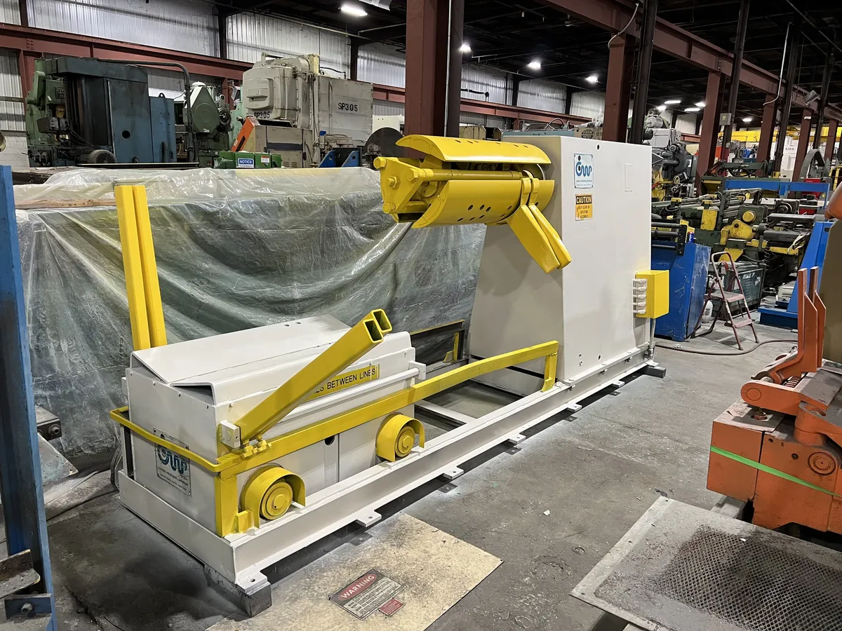 Used 1991 CWP 20,000 LB x 36" Coil Reel, Uncoilers, Stock# 13684J. Features: hydraulic expansion, powered jog, coil car. Max weight: 20,000 lb. Max width: 36". S/N# M25443SEF, M25443SR. Perfect for heavy-duty applications.