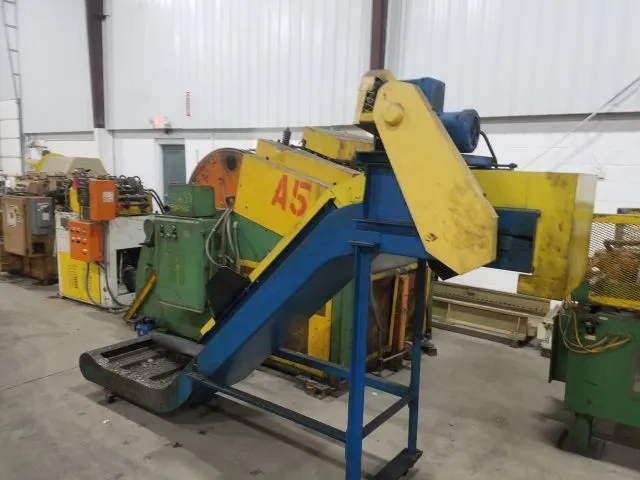 Used MAYFRAN Chip Tote Conveyor, Model 723-2913-1. Ideal for efficient chip handling with 16" width, 3' infeed length, and 56" discharge height. Perfect for industrial applications requiring reliable material transport. Stock# 13666J.