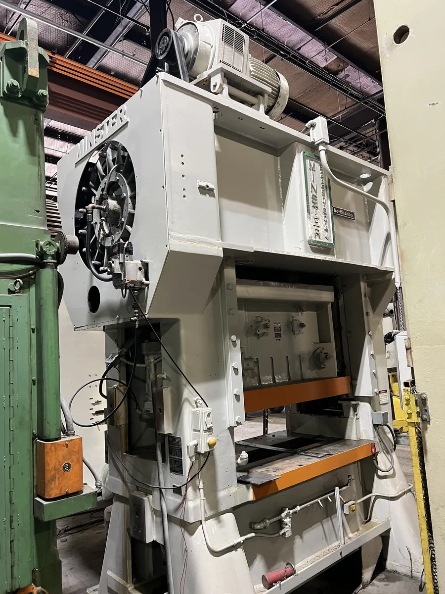 MINSTER 250 TON SSDC PRESS, s/n 16892, offering robust 250-ton capacity. Features include a 1.5" stroke, 18" shut height, and recirculating lube, plus air clutch/brake for smooth operation. Optimize your production with a reliable performance ratio.