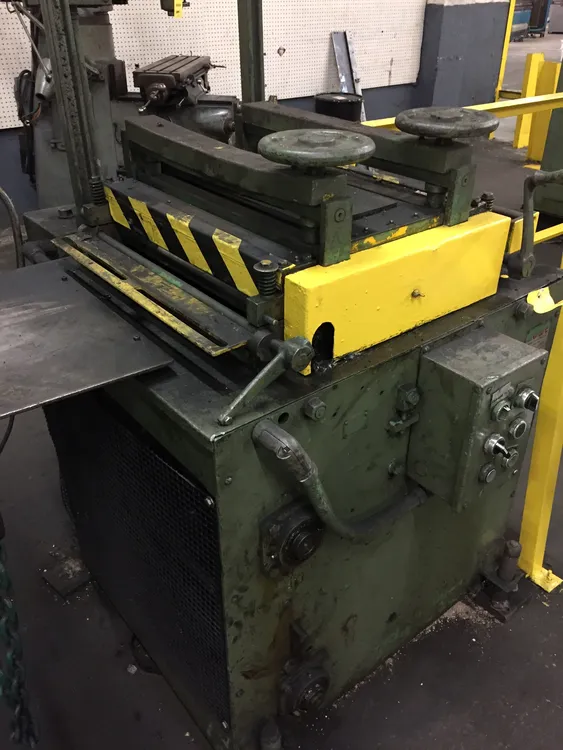 ROWE 20" Coil Straightener, Model R-20TC, S/N: 22416. Features 7 roll straightening with entry/exit pinch rolls. Operates Fwd/Rev/Jog. Capacity: 20" width, .020-.065" thickness. Good condition. Dimensions: 34" LR x 48" FB x 52" Tall, Weight: 1500 lbs.
