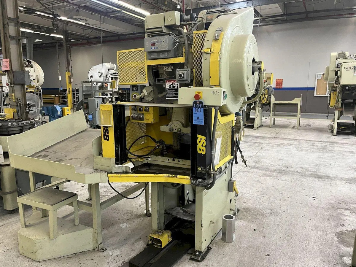 Explore precision with the used FEDERAL 22 TON OBI PRESS featuring a 3" stroke, 150 SPM, and a robust air clutch system. Complete with palm buttons and foot pedal for efficient operation. Dimensions: 50" x 60" x 89". Approx. 4500 lbs.