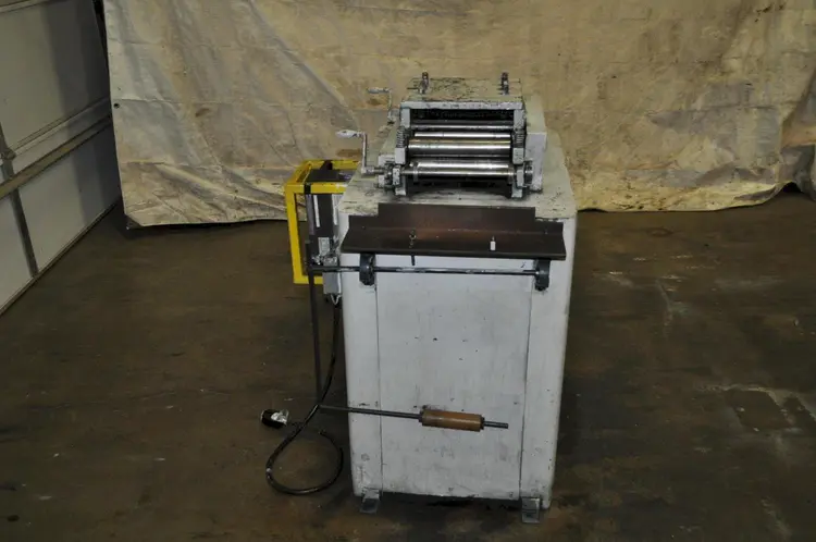 DURANT 10" x .130" used coil straightener, model 10" x .130", stock# 14313J. Features 7 roll straightener, entry/exit pinch rolls, variable speed with frequency drive, loop control, handling up to 10" width and .020"-.130" thickness, 0-100 FPM.
