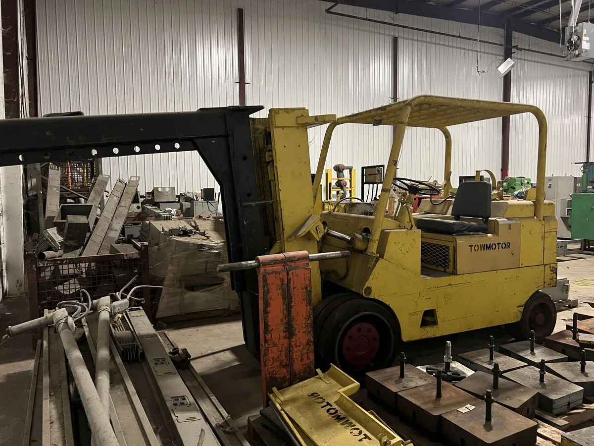 Caterpillar 850SG20024, a robust 20,000 lb capacity lift truck, available now. Features include a V8 motor, LP fuel type, 107" lift height, 60" forks, overhead guard, and cushion solid tires. Contact us for more details on this reliable used machine.